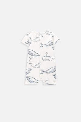 COCCODRILLO Pajac z krótkim rękawem - biały z nadrukiem na całości - rozmiar 68 - dla chłopca