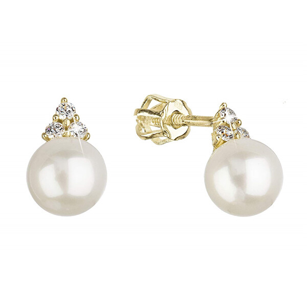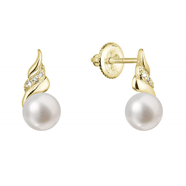 Evolution Group Nežné zlaté náušnice so zirkónmi a pravými perlami 91PZ00025