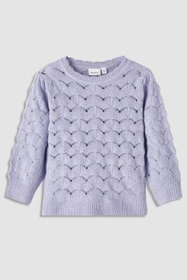 NAME IT Sweter dzianinowy - szary ażurowy - rozmiar 92 - dla dziewczynki
