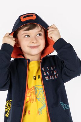 COCCODRILLO Bluza rozpinana - granatowa z kapturem z motywem dinozaura - rozmiar 116 - dla chłopca