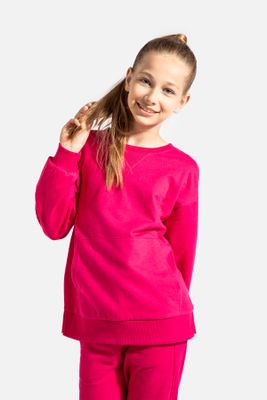 COCCODRILLO Bluza dresowa - w kolorze fuksji gładka ocieplana bez kaptura z kieszenią kangurką - rozmiar 128 - dla dziewczynki