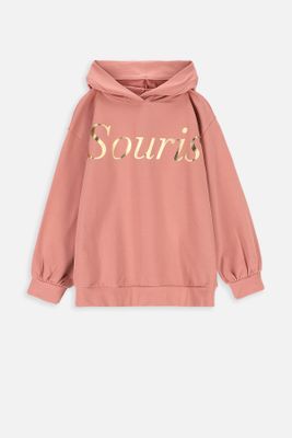 COCCODRILLO Bluza dresowa - łososiowa przedłużana z napisem i kapturem - rozmiar 92 - dla dziewczynki
