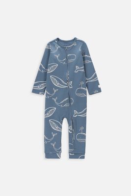 COCCODRILLO Pajac bez stóp - niebieski, zapinany na zamek - rozmiar 92 - dla chłopca