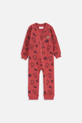 COCCODRILLO Pajac bez stóp - bordowy z printem w misie i napisy - rozmiar 86 - dla chłopca