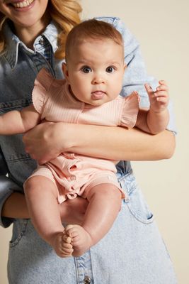 COCCODRILLO Pajac z krótkim rękawem - różowy prążkowany - rozmiar 86 - dla dziewczynki
