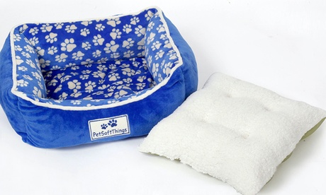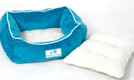 Dog Bed Plush Fluffy Soft Warm Calming Dog Puppy Kitten Cat Pet Bed Dogs Soft Scuba in Blue | Small