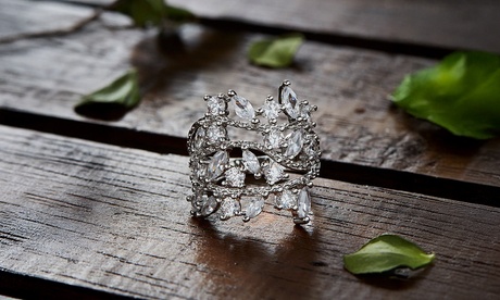 18k Gold Leaf Ring Made With crystals from Swarovski 6 5 ct Silver Crystal Crystal December in White | One Size