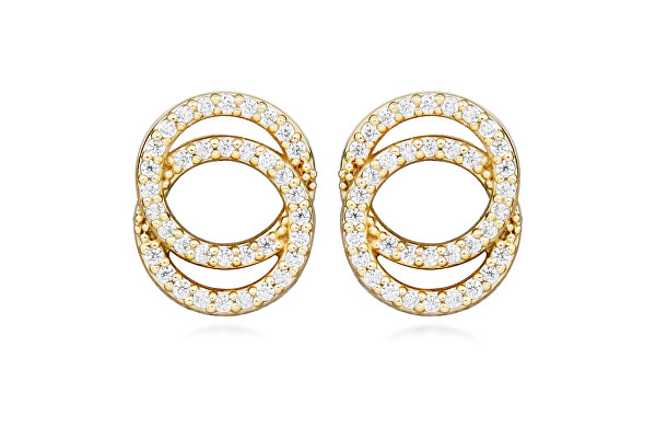 Silver Cat Žiarivé pozlátené náušnice kôstky so zirkónmi Beauty SC591