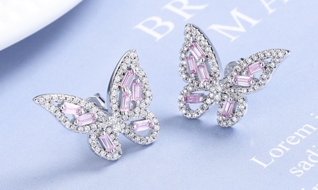 Sterling Multi-Cut Pink Butterfly Earrings with crystals from Swarvoski Sterling in Silver | One Size