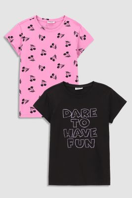 MOKIDA T-shirt z krótkim rękawem 2 pack - czarny i różowy z nadrukami - rozmiar 164 - dla dziewczynki