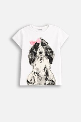 COCCODRILLO T-shirt z krókim rękawem - biały z nadrukiem pieska na przodzie - rozmiar 104 - dla dziewczynki