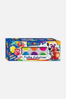 BAMBINO Farby plakatowe 10 kolorów 20 ml - w tym 4 brokatowe i 4 fluorescencyjne - rozmiar ONE SIZE -