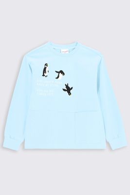 COCCODRILLO Bluza dresowa - niebieska z nadrukiem i kieszenią - rozmiar 92 - dla dziewczynki