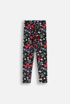 COCCODRILLO Legginsy z długą nogawką - czarne z nadrukiem w kwiaty na całości - rozmiar 146 - dla dziewczynki