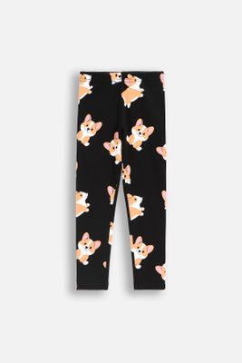 COCCODRILLO Legginsy z długą nogawką - czarne z nadrukiem piesków na całości - rozmiar 98 - dla dziewczynki