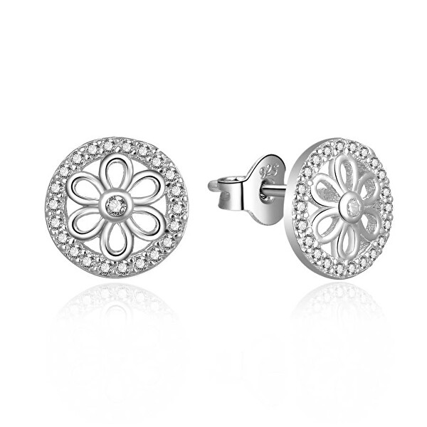 MOISS Csillogó ezüst fülbevalók cirkónium kövekkel Virágok E0003008