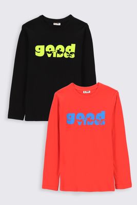 MOKIDA T-shirt z długim rękawem 2 pack - bawełniany czarny i neonowy czerwony - rozmiar 110 - dla chłopca