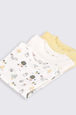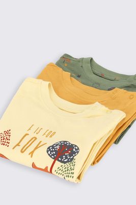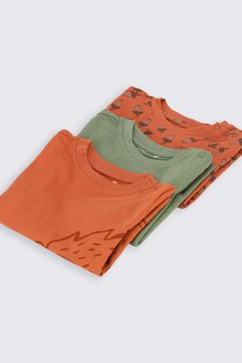 MOKIDA T-shirt z krótkim rękawem 3 pack - bawełniany pastelowy z motywem lasu - rozmiar 68 - dla chłopca