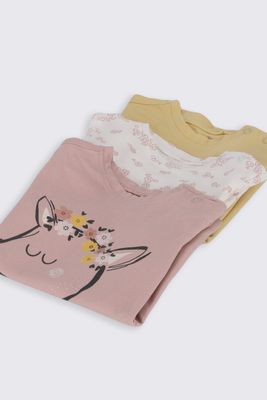 MOKIDA T-shirt z krótkim rękawem 3 pack - bawełniana pastelowa z motywem kwiatów i natury - rozmiar 68 - dla dziewczynki