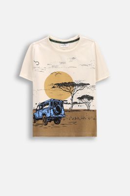 COCCODRILLO T-shirt z krótkim rękawem - ecru z nadrukiem na przodzie i surowym wykończeniem - rozmiar 104 - dla chłopca