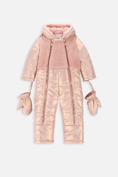 Zimní kombinéza - pudrově růžová s kapucí, rukavičkami a bavlněnou podšívkou - Velikost: 80 - pro dívku