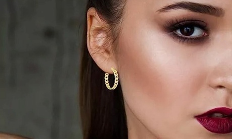 Italian 925 Sterling 18MM Curb Hoop Earrings Stamped 925 Gold Sterling in Silver | One Size