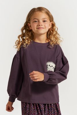 COCCODRILLO T-shirt z długim rękawem - fioletowy z bufiastymi rękawami - rozmiar 110 - dla dziewczynki