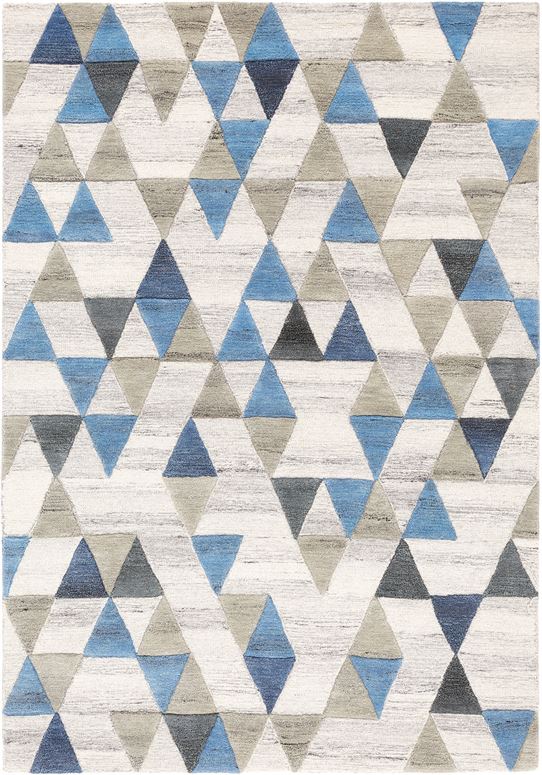 Kobercový ráj Vlněný kusový koberec moderní Lima Ate Trojúhelníky modrý šedý bílý Rozměr: 120x170 cm