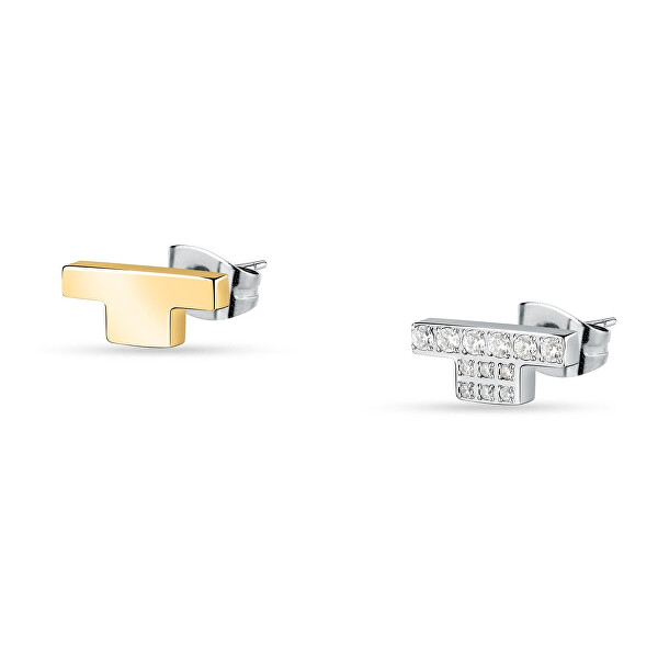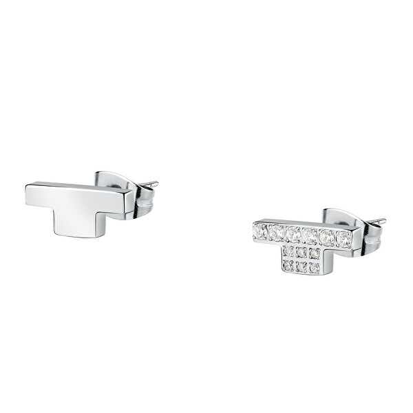 Trussardi Elegantné asymetrické náušnice so zirkónmi T-Logo TJAXC37