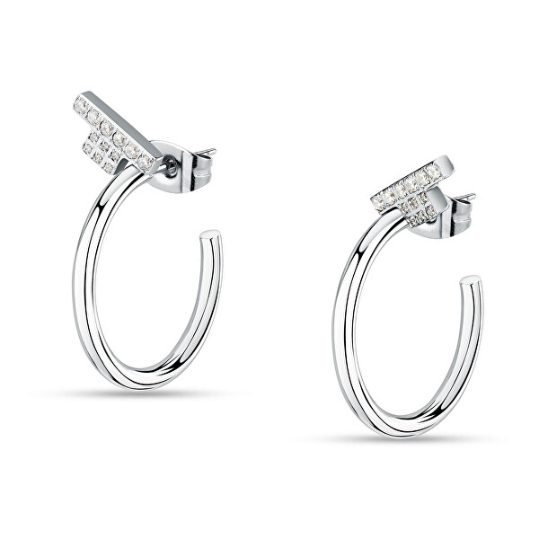 Trussardi Pôvabné oceľové náušnice so zirkónmi T-Logo TJAXC33