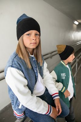 BROEL Czapka przejściowa - chłopięca dwustronna z bawełną z recyklingu - rozmiar 44 - dla chłopca