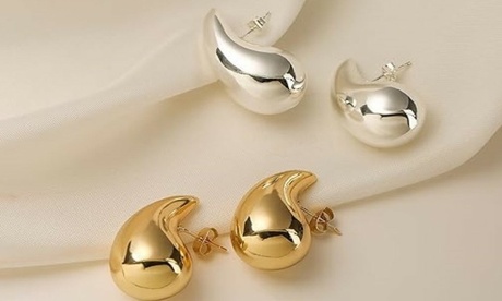 Italian Made 925 Sterling Gold or Chunky Teardrop Earrings Gold Sterling in Silver | One Size