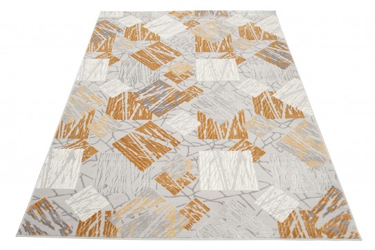 Makro Abra Moderní kusový koberec ASTHANE E464A světle šedý / tmavě žlutý Rozměr: 80x150 cm
