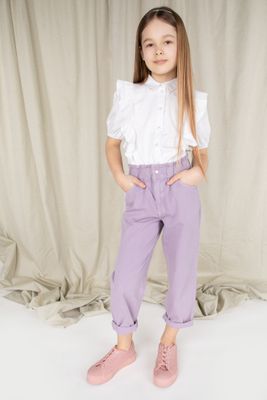 COCCODRILLO Bluzka z krótkim rękawem - biała z kołnierzykiem i falbankami - rozmiar 128 - dla dziewczynki