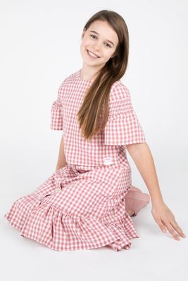 COCCODRILLO Bluzka z krótkim rękawem - wielokolorowa w kratę - rozmiar 158 - dla dziewczynki