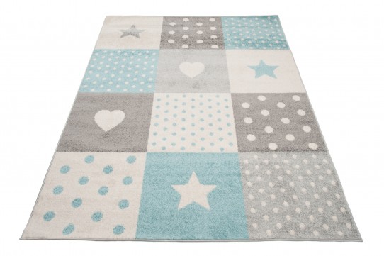 Makro Abra Kusový koberec LAZUR C573A hvězdy srdce bílý modrý šedý Rozměr: 300x400 cm