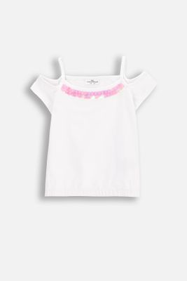 COCCODRILLO T-shirt z krótkim rękawem - biały z nadrukiem i cekinami - rozmiar 104 - dla dziewczynki