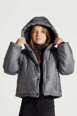 COCCODRILLO Kurtka zimowa - srebrna z kapturem i kieszeniami - rozmiar 152 - dla dziewczynki