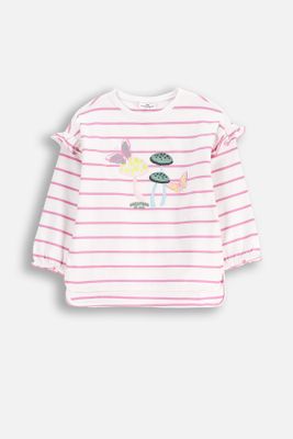 COCCODRILLO T-shirt z długim rękawem - wielokolorowy w paski z nadrukiem i falbankami na rękawach - rozmiar 104 - dla dziewczynki