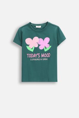 COCCODRILLO T-shirt z krótkim rękawem - zielony z nadrukiem kwiatów - rozmiar 104 - dla dziewczynki