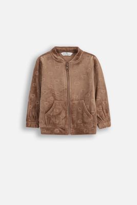 COCCODRILLO Welurowa bluza rozpinana - brązowa z motywem misia i kieszeniami - rozmiar 80 - dla chłopca
