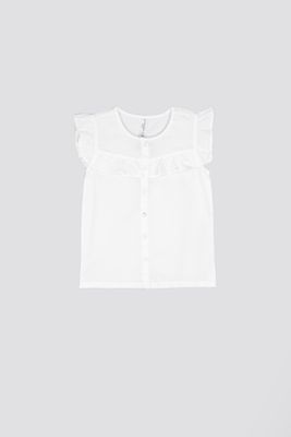 COCCODRILLO Bluzka z krótkim rękawem - biała z falbanami zapinana na guziki - rozmiar 104 - dla dziewczynki