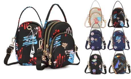Women Cell Phone Purse Wallet Handbag Case Shoulder Bag Cross-body Pouch Watercolor in Black | Small