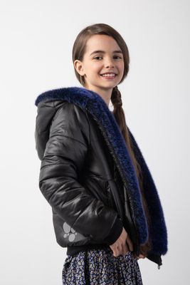 COCCODRILLO Kurtka dwustronna z futerkiem - wielokolorowa z kapturem i kieszeniami - rozmiar 140 - dla dziewczynki