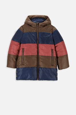COCCODRILLO Kurtka zimowa - wielokolorowa w paski z kapturem i bawełnianą podszewką - rozmiar 92 - dla chłopca