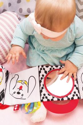 MOM'S CARE Książeczka sensoryczna kontrastowa "Lusterko" - z szeleścikami i kolorowymi wstążkami - rozmiar ONE SIZE -