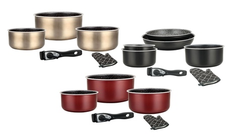 Set di pentole Herzberg con manico rimovibile,17 pezzi , Bordeaux, Black