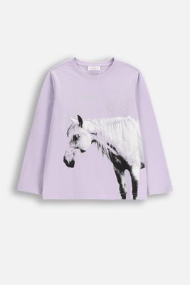COCCODRILLO T-shirt z długim rękawem - fioletowy z nadrukiem konia - rozmiar 104 - dla dziewczynki