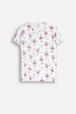 COCCODRILLO T-shirt z krótkim rękawem - biały z nadrukiem baletnic na całości - rozmiar 104 - dla dziewczynki