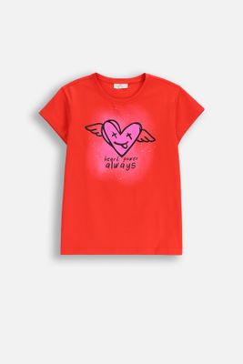 COCCODRILLO T-shirt z krótkim rękawem - czerwony z nadrukiem serca na przodzie - rozmiar 104 - dla dziewczynki